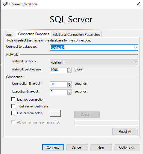 We tried to select <default> database on Connection Properties Tab, still no luck.