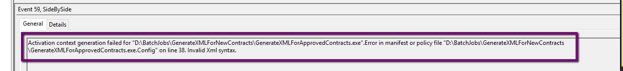 While checking the event log, we found that there was some issue in the config file for the console app.