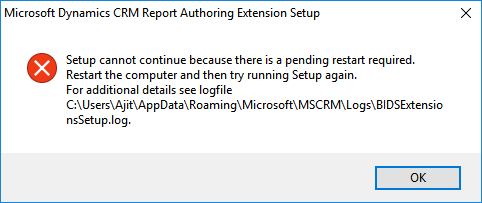 D365: “Setup cannot continue because there is a pending restart required. Restart the computer and then try running Setup again” Error while installing Report Authoring Extension