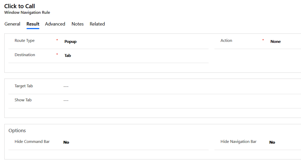 Step 1: Create a Windows Navigation Rule that suppresses the out of the box click to call functionality to call using Skype as shown below: