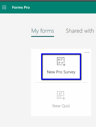 Go to https://formspro.microsoft.com/ and sign in with O365 credential. Click on New Pro Survey to start deisgning the survey.
