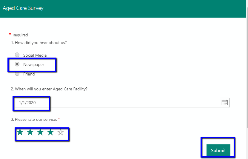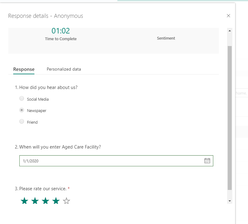 Clicking on the most recent submitted response, we can see the answers we had provided.