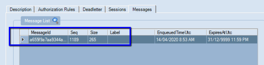 After posting the message, in Service Bus Explorer, we can see the details of the message with Session Id as shown below: