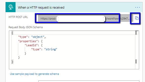 We can pass parameter to the PowerAutomate in JSON format. In this example, we’ll pass Lead Record Id.